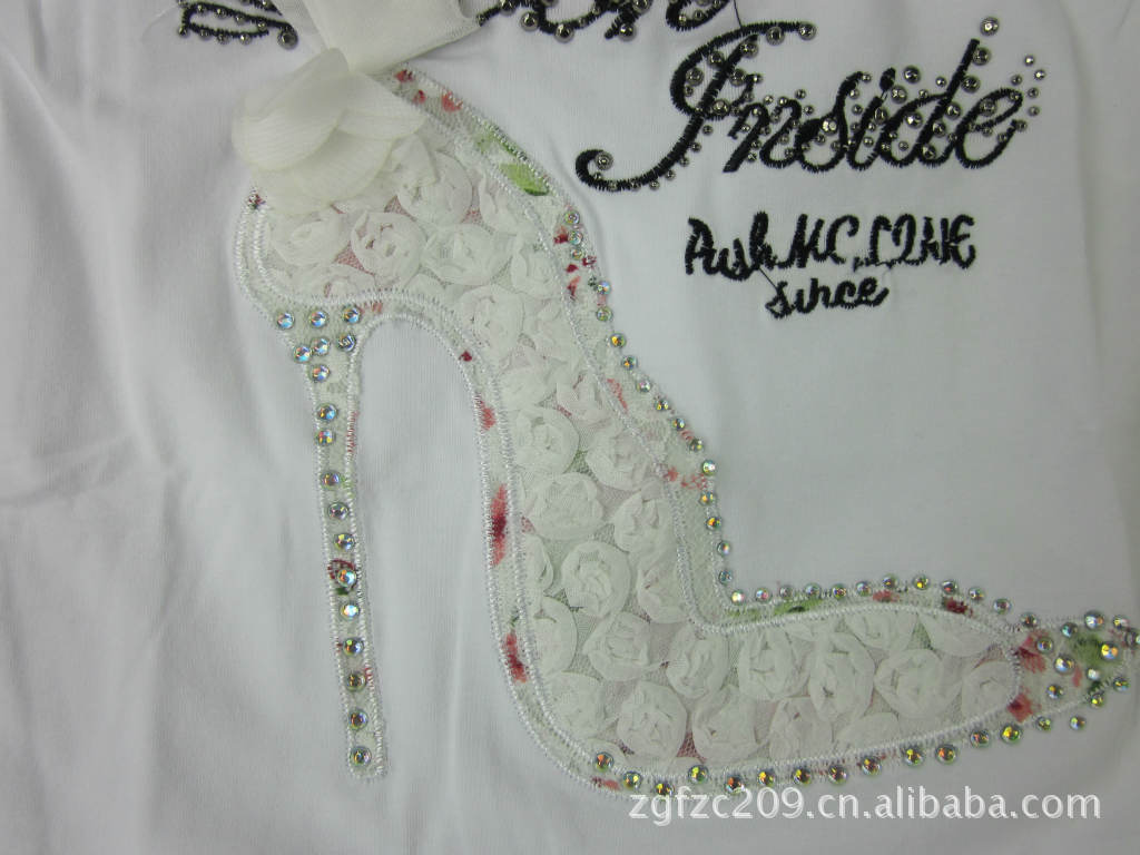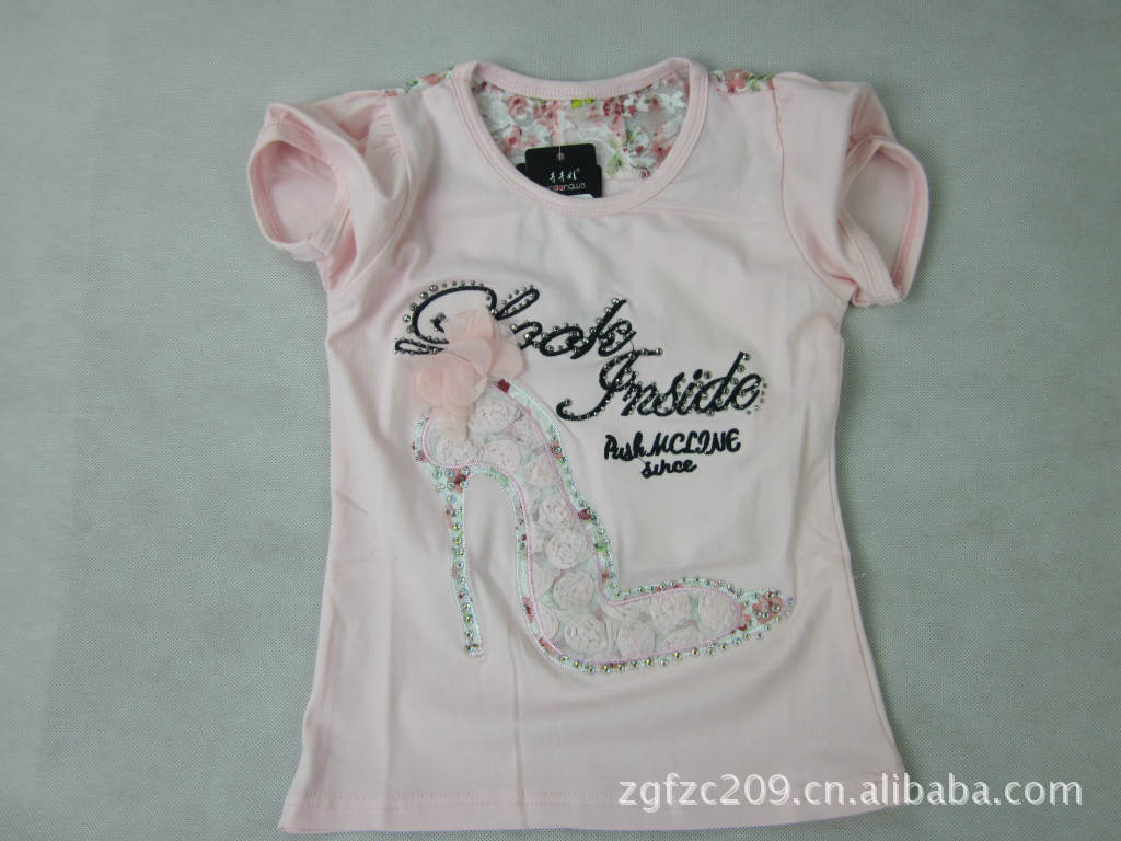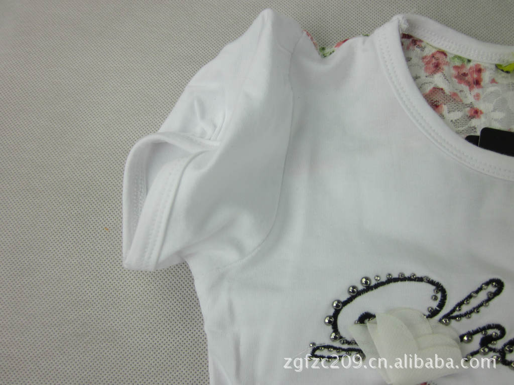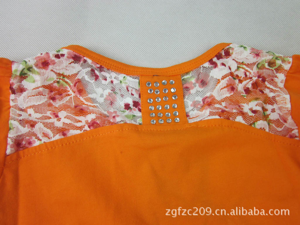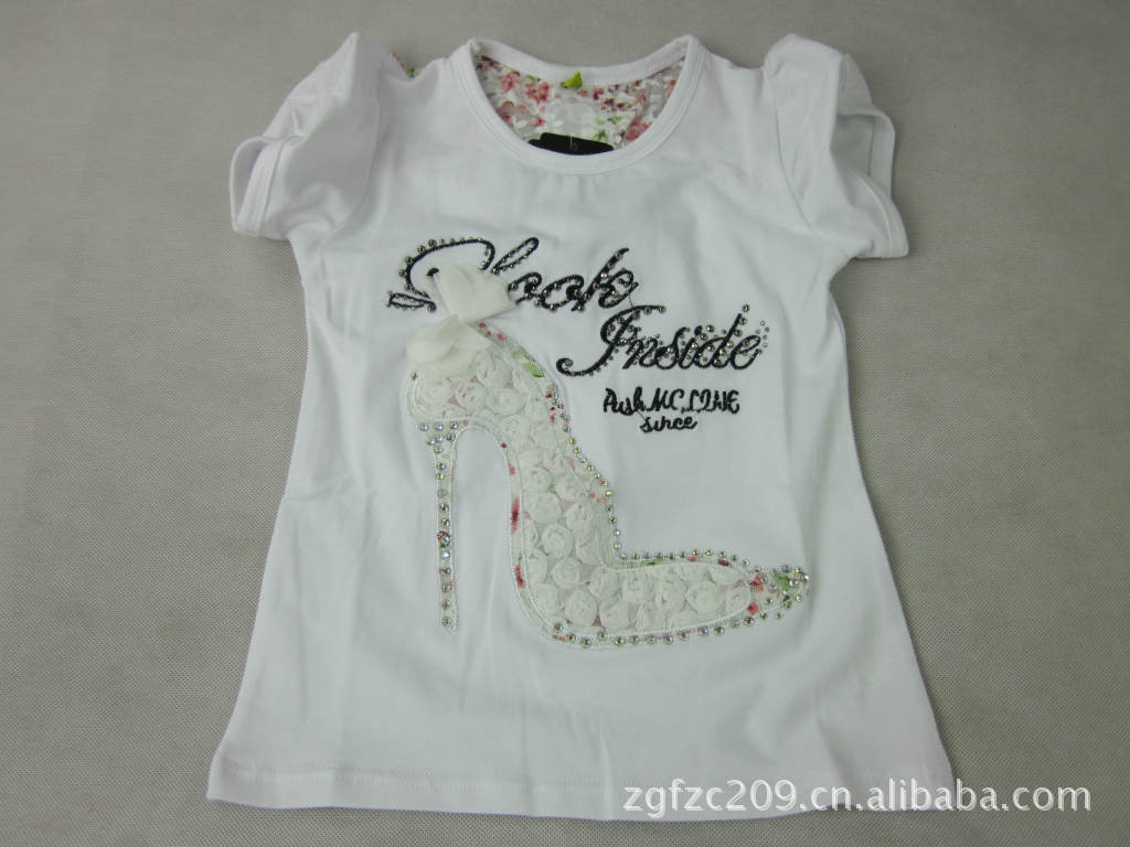 批發(fā)日韓版女童T恤時尚獨特雷絲貼秀百塔款