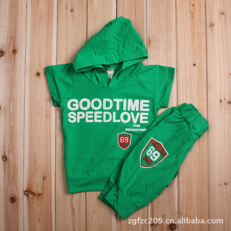 批發(fā)日韓版男童套裝時尚獨特卡通字母運動款