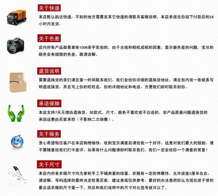 質量:本店產品質量相比目前阿里童裝類目下的大部分商家質量都要過硬些許,這個是可以比較的我們說的在好不如您下單拿回去比較來的有說服力,我們對自己的產品是有信心的 相信我們的產品能夠贏得您和市場的青睞