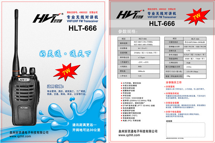 距離王30公里 好靈通專業(yè)無線對講機廠家HLT-666帶擾頻高功率7W