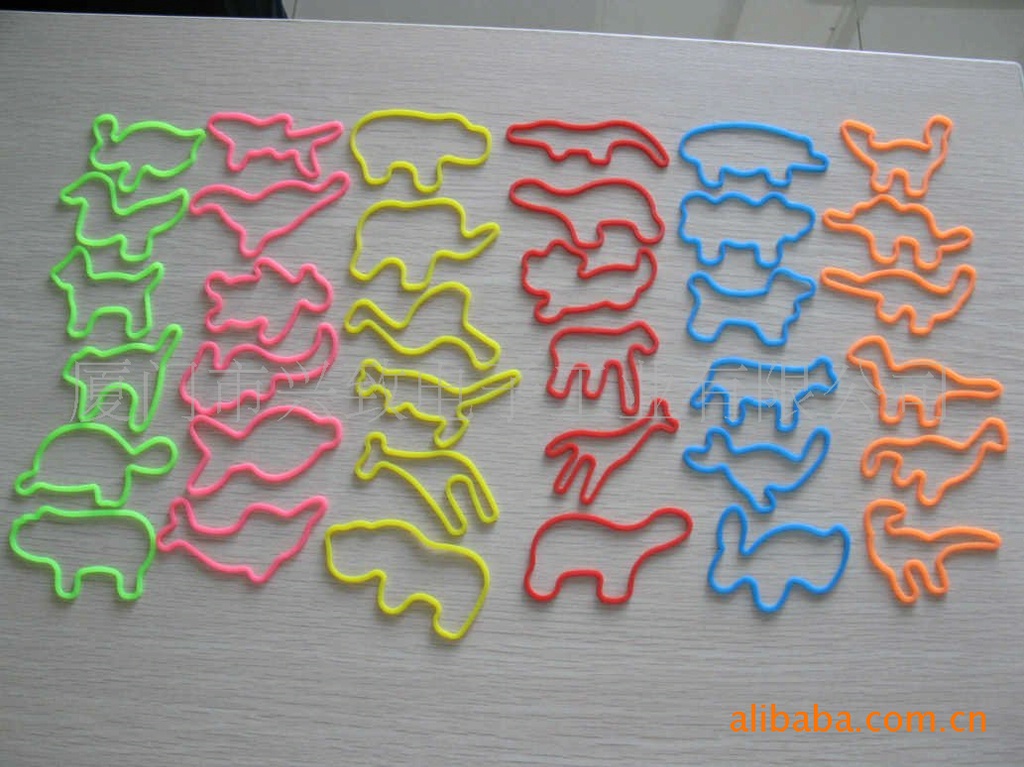 供應(yīng)動(dòng)物系列、字母系列、數(shù)字系列等等硅膠皮筋,無毒環(huán)保??捎糜谌粘@υ褂茫部捎糜趻旒b飾。也供應(yīng)其他形狀皮筋。