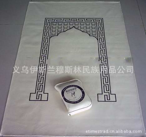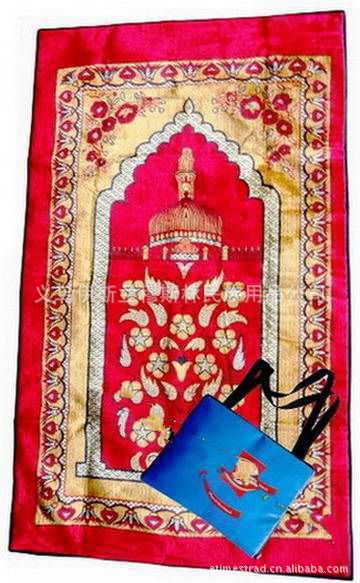 此產(chǎn)品產(chǎn)自伊斯蘭國家,(巴基斯坦),是純機織,地毯式禮拜毯,它的特點是, 款式新.價格底, 檔次高,是一款實惠經(jīng)濟的民族用品.新款便攜式禮拜毯,配備拜向儀,英語、阿拉伯語世界主要城市朝拜方向彩色說明書,選用防水面料制做,多種顏色,款式新穎,便于攜帶.折疊入包的規(guī)格:13cmX10cm,展開的規(guī)格:100cmX62cm,包裝:600個/箱.有部分現(xiàn)貨供應(yīng).我公司同時還可根據(jù)客戶的需求,制作各種款式的便攜式穆斯林禮拜毯.并長期供應(yīng)提花禮拜毯、加厚禮拜毯、挎包式禮拜毯、兒童禮拜毯、壓花禮拜毯、晴氈禮拜毯、高級雙人禮拜毯,凹凸提花圖案禮拜毯等穆斯林產(chǎn)品,常年承接外貿(mào)訂單。