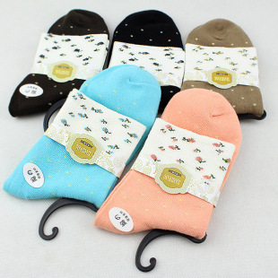 批發(fā)女襪子 女士全棉松羅口翠花 可愛中筒秋冬款女襪 諸暨襪子