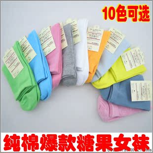 襪子批發(fā) 庫存外貿(mào)尾單 純棉糖果色女襪 中筒十色 諸暨襪子 襪子
