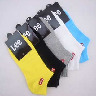批發(fā)男士純色純棉船襪 時(shí)尚休閑男襪 刺繡LEE運(yùn)動襪 義烏襪子廠家
