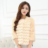 海寧2014秋季新品羊羔毛七分袖短款波浪紋整皮進(jìn)口兔毛皮草外套
