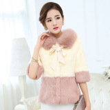 2014新款海寧皮草女狐貍毛領(lǐng)反季短款兔毛皮草外套清倉(cāng)特價(jià)