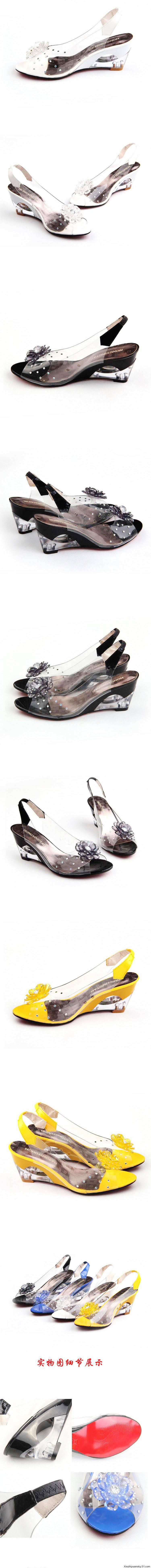 2013公主鞋波西米亞透明水晶鞋水鉆花朵坡跟涼鞋魚嘴涼鞋