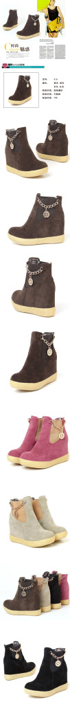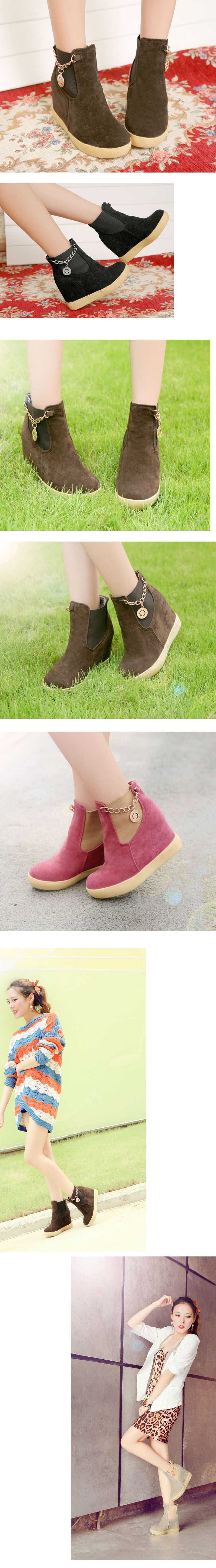 冬日可愛(ài)乖巧內(nèi)增高拼色保暖短靴金屬吊墜磨砂靴子