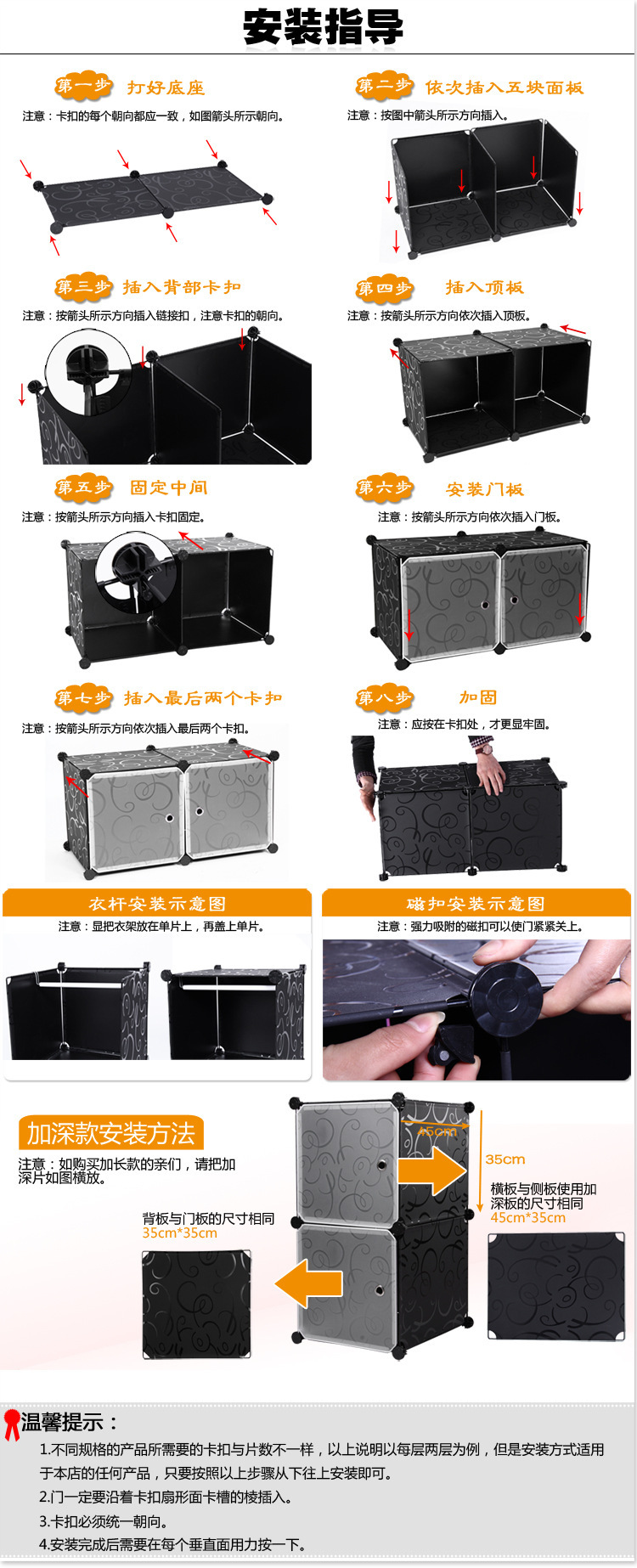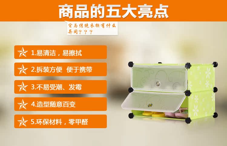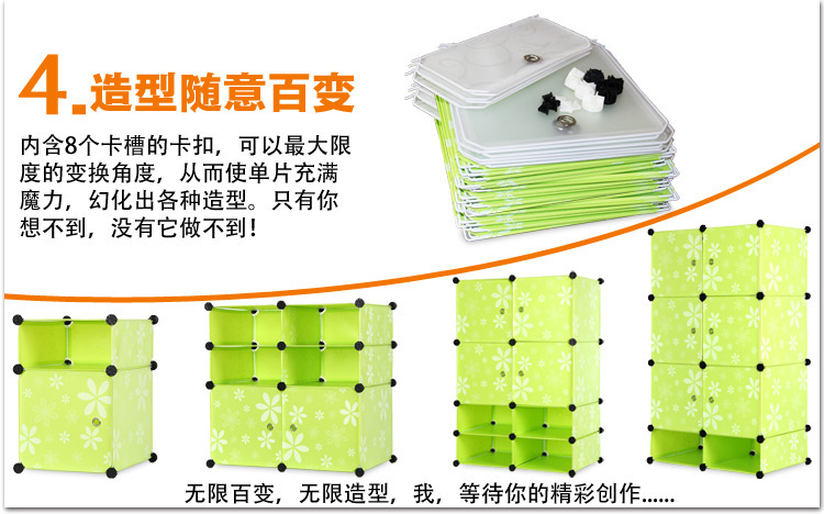 2.可用做衣柜,鞋柜,書架,廚具柜,食品存放架等使用,方便實用,造型百變。