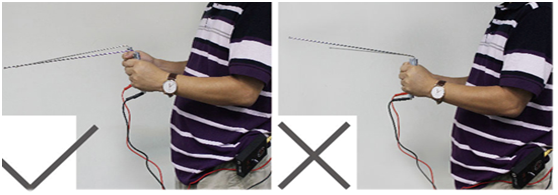 使用者必須以放松姿勢站立,兩腳稍微分開,雙臂緊貼身體但不要太緊。握住接收桿時,手掌和手腕不宜太用力,使其在手中自動達(dá)到平衡狀態(tài),并始終相互平行。手握桿時,使其與地面平行,以增加其敏感性,或稍微向下傾斜5-8°,達(dá)到更好的平衡狀態(tài)(若你是的分子頻率探測的新手)。最重要的一點是練習(xí)持桿的方法,直到兩桿不再相互“移開”。