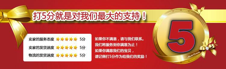 各位買(mǎi)家注意了!在去物流提貨時(shí),請(qǐng)先打開(kāi)檢查一下物品的數(shù)量、破損情況。如有問(wèn)題請(qǐng)讓物流開(kāi)證明。及時(shí)聯(lián)系我們,我們會(huì)幫您解決,謝謝合作!(您的家人、同事、朋友等幫您代提收件。則跟您本人簽收一樣有效。物流提貨后就代表確認(rèn)貨物正確完好,數(shù)量正確,之后發(fā)生的問(wèn)題我將不承擔(dān)責(zé)任。如不放心請(qǐng)自己簽收?。?/p>