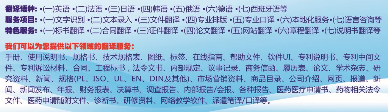 河南鄭州樂迪翻譯公司專注于以下翻譯領域:英語工程翻譯、法語工程翻譯、各語種駕駛證翻譯、英語合同翻譯、法語合同翻譯、英語公司章程翻譯、法語公司章程翻譯、英語財務報表翻譯、法語財務報表翻譯、英語公司簡介翻譯、法語公司簡介翻譯。