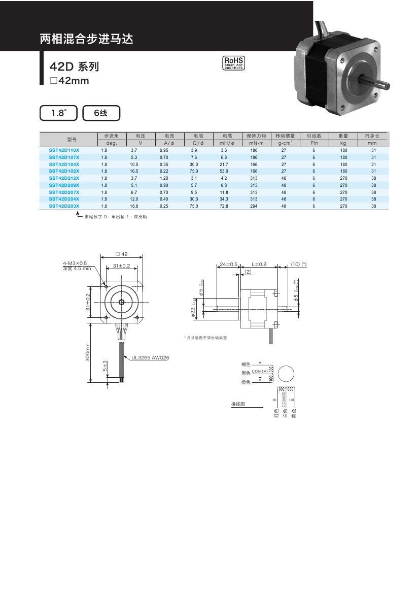 自動(dòng)記錄儀用信濃步進(jìn)電機(jī),SST42D1070信濃馬達(dá)SST42D1071