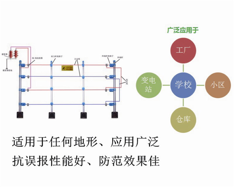 單線觸網(wǎng)報(bào)警:能識(shí)別入侵者觸碰電子圍欄前端單線,并發(fā)出報(bào)警。觸網(wǎng)報(bào)警全面革新了電子圍欄報(bào)警方式,并可區(qū)分人體與小動(dòng)物的觸碰。