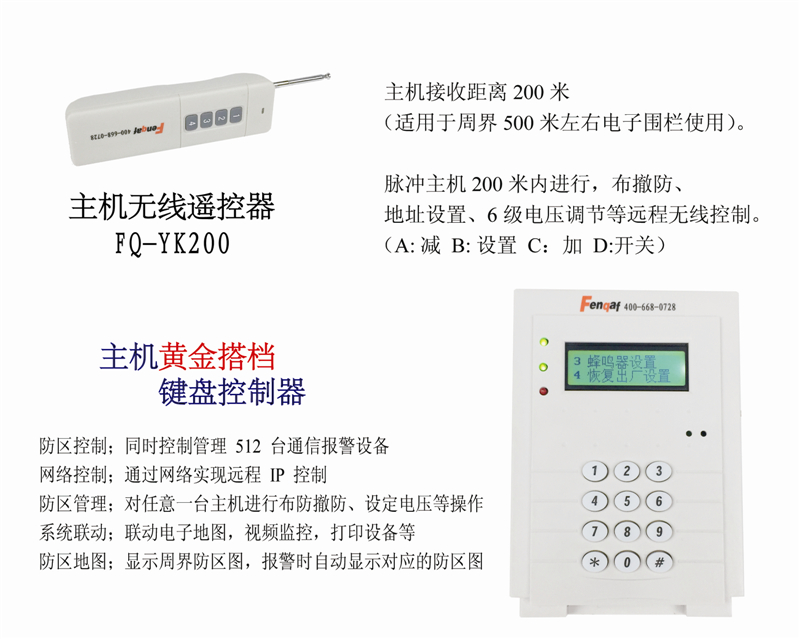 遠(yuǎn)程控制:通過(guò)智能鍵盤(pán)或控制軟件可實(shí)現(xiàn)遠(yuǎn)程防區(qū)布撤防、模式切換、輸出電壓調(diào)整、靈敏度調(diào)節(jié)、報(bào)警響應(yīng)時(shí)間調(diào)節(jié)等功能。
