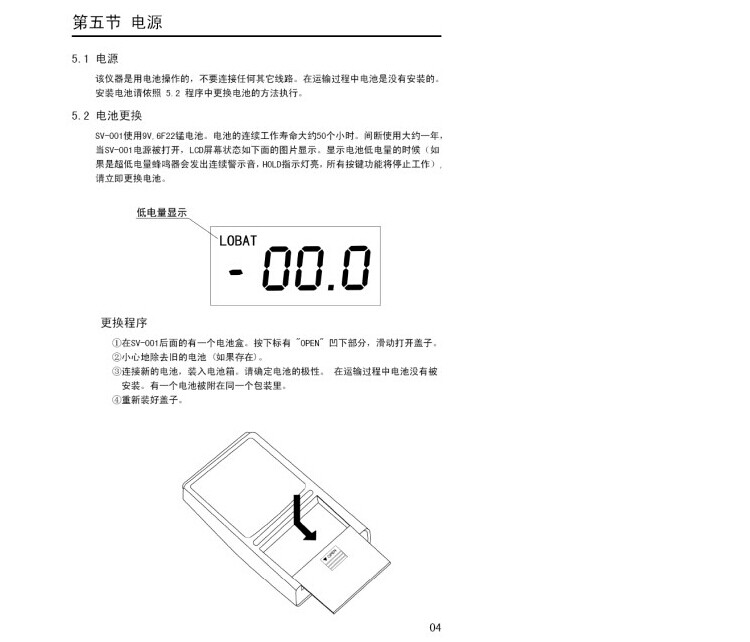 電源: 9V,6 F22Y 錳電池; 壽命: 連續(xù)工作大約50小時(shí),間斷使用約一年