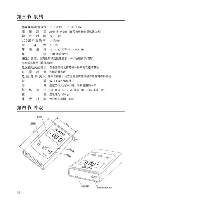 靜電電壓測(cè)量范圍: ± 0.0 KV ~ ± 50.0 KV