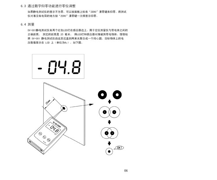 測(cè)量距離: 25mm ± 0.5mm (在帶電體和測(cè)量儀器之間)