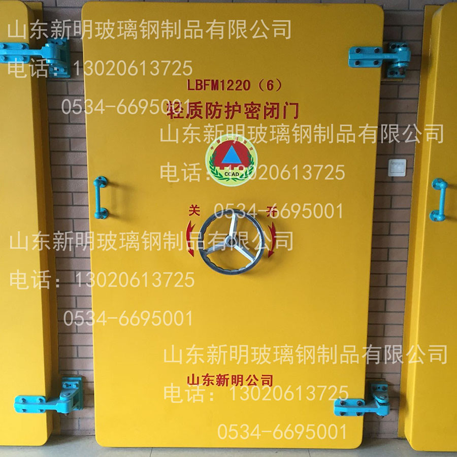山東新明玻璃鋼制品有限公司與中國人民解放軍總參第四設(shè)計研究院聯(lián)合研制的輕質(zhì)防護密閉門系列產(chǎn)品,用于人防防護工程,經(jīng)專家評定達到國內(nèi)領(lǐng)先水平,填補了目前國內(nèi)SMC產(chǎn)品的空白,是人防工程防護設(shè)備行業(yè)革命性變革。 輕質(zhì)防護密閉門采用SMC復合材料,運用模壓工藝生產(chǎn)而成。內(nèi)置預埋嵌件通過SMC高溫高壓而成,其強度大大增加,門與門框采用密封條密封,密閉措施可靠。
