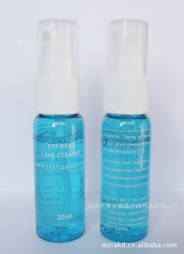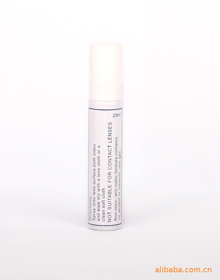 使用方法:將噴頭對準鏡片兩面各噴一下(距離10-15cm)然后用鏡布或柔軟的紙巾輕拭。