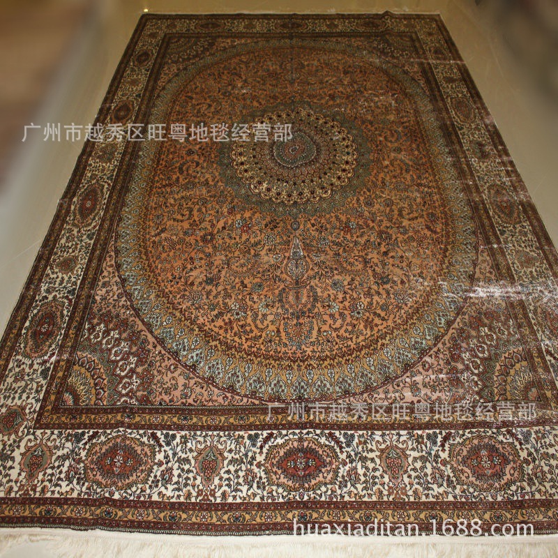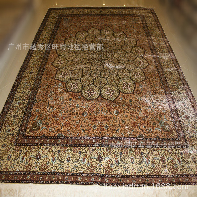 我廠專業(yè)生產(chǎn)手工編織的全真絲地(掛)毯,即波斯地(掛)毯。