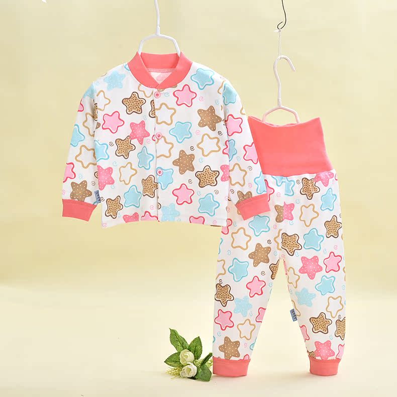 2015春季新款純棉嬰兒服裝兒童內(nèi)衣套裝寶寶對開扣高腰兩件套