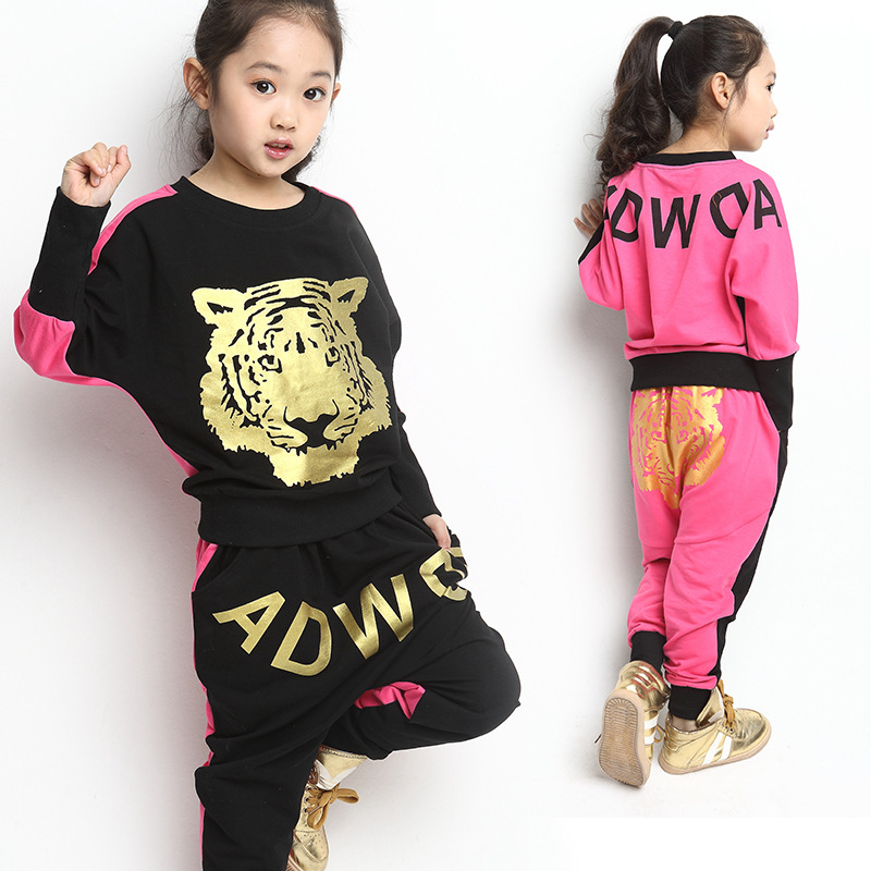 童裝2014韓版新款春款中大童老虎女童套裝廠家***件代發(fā)新品