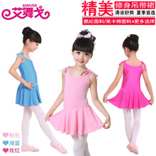 兒童舞蹈服裝女童棉連體裙短袖春夏練功服粉連體服連衣裙黃考級服25.00