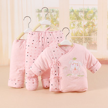 奇萌娃初生嬰兒衣服秋冬加厚新生兒保暖衣套裝滿月寶寶棉衣套裝