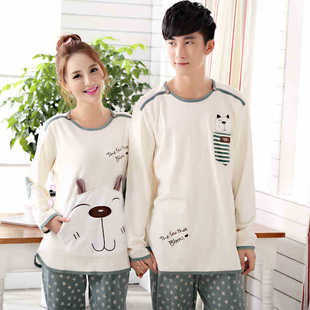卡通情侶睡衣 秋冬季情侶家居服套裝男女居家服睡衣批發(fā) 廠家***
