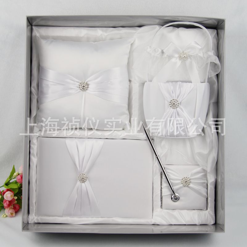 西式婚慶用品 ***婚品定制 新款白色水鉆戒枕簽到本五件***貨