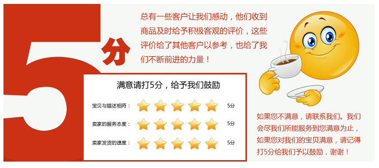 簽收時請務(wù)必當著運輸工作人員的面,檢查商品有沒有損壞,核對數(shù)量是否正確,或是有問題***叫物流公司聯(lián)系我們,簽字后,工作員離開后,發(fā)生的問題,買家承擔,為了有一個愉快的交易,請***執(zhí)行!謝謝!一旦簽收則視為對商品已認可。