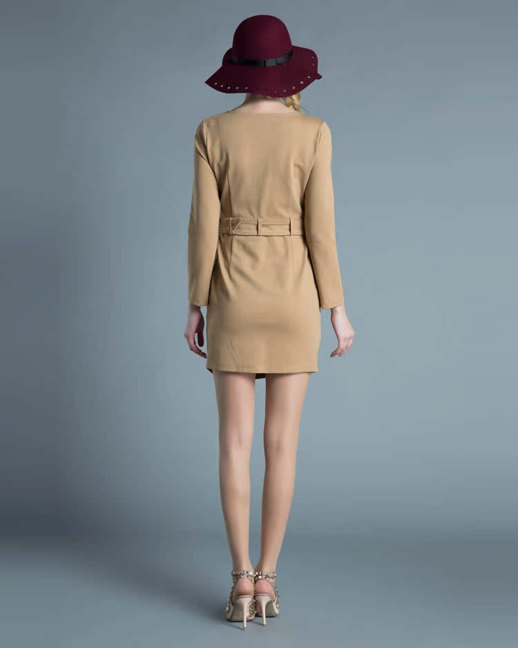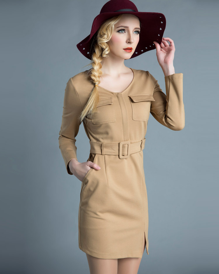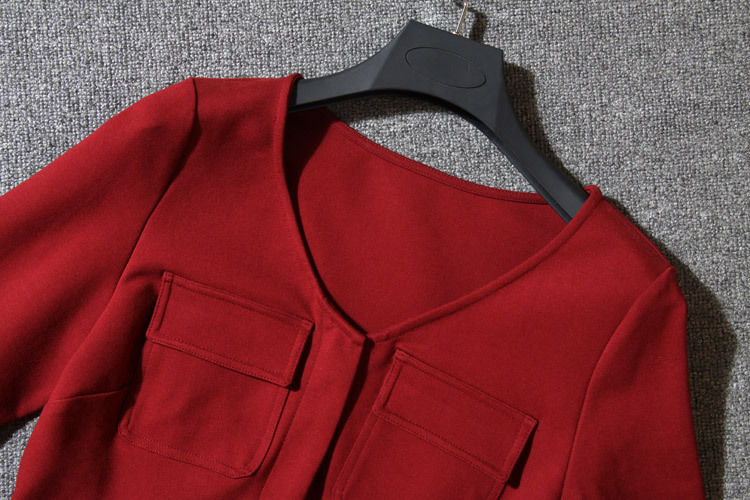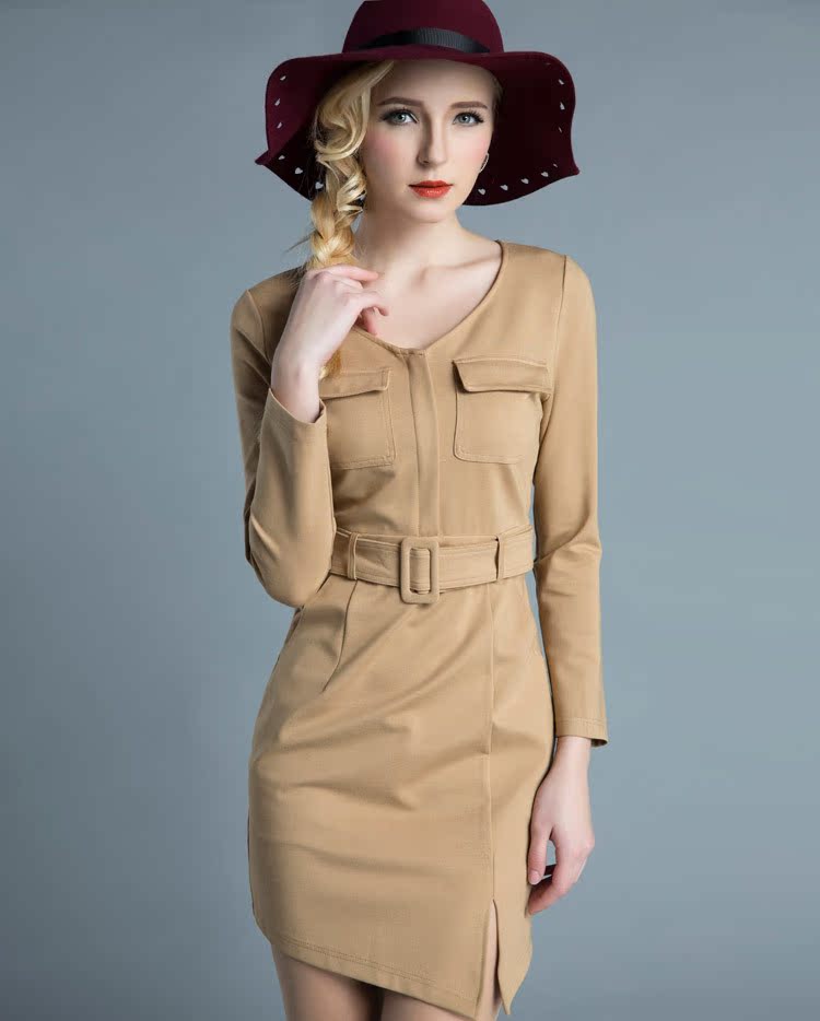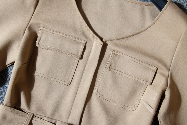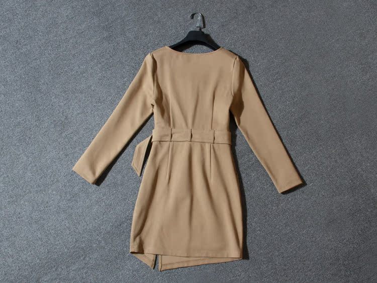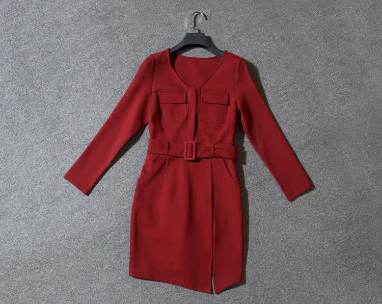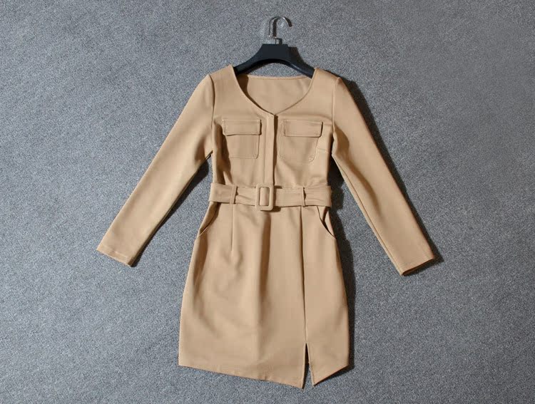 歐洲站***女裝廠家***5春裝新款BAA095V領(lǐng)口袋修身連衣裙子
