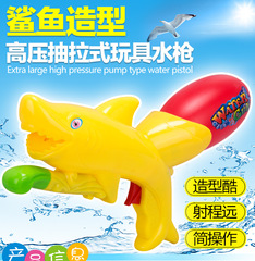 ¥3.90夏天兒童玩具水槍鯊魚(yú)高壓抽拉式玩具水槍可混批沙灘***