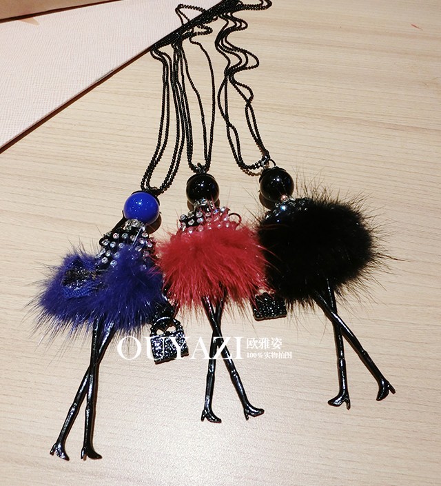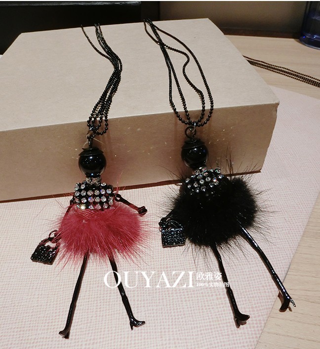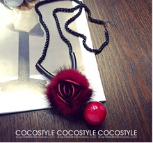 小香風(fēng)山茶花水貂毛韓國百搭水晶配飾裝飾飾品項(xiàng)鏈毛衣鏈長款秋8.00