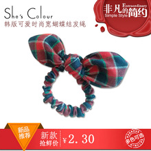 韓國 可愛時(shí)尚寬蝴蝶結(jié)發(fā)繩 兔耳朵花格發(fā)圈 發(fā)卡發(fā)夾發(fā)飾品女2.30