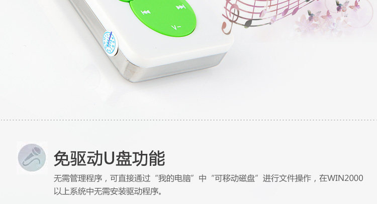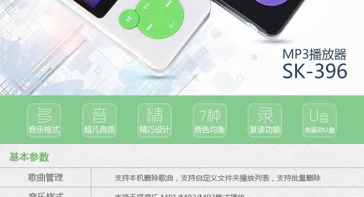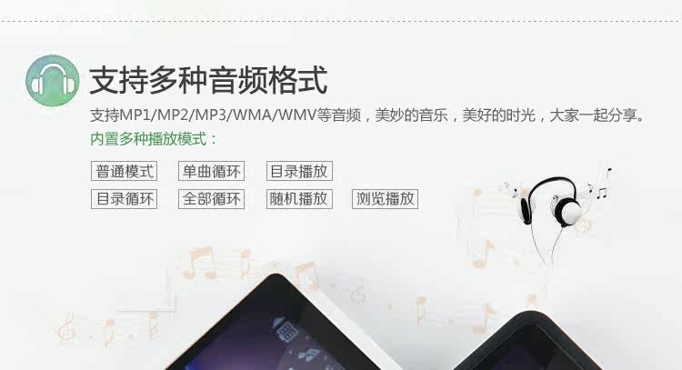 音樂格式:支持MP3、WMA、OGG、WAV等多種格式音樂播放