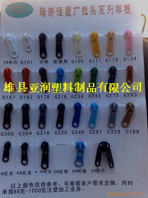 你好,我廠***生產(chǎn)一次成型塑料拉鏈頭,現(xiàn)有3# 4# 4.5# 5# 12#尼龍 5#反口,4#雙拉片5#雙拉片,3#5#樹脂等塑料拉鏈頭,