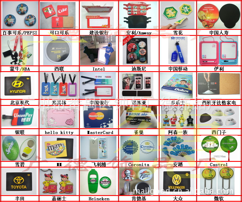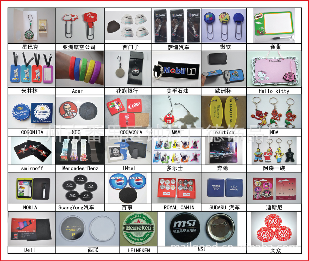 主要制造產(chǎn)品:PVC鑰匙扣、鼠標(biāo)墊、磁性寫字板、冰箱貼、各種杯墊等。。。