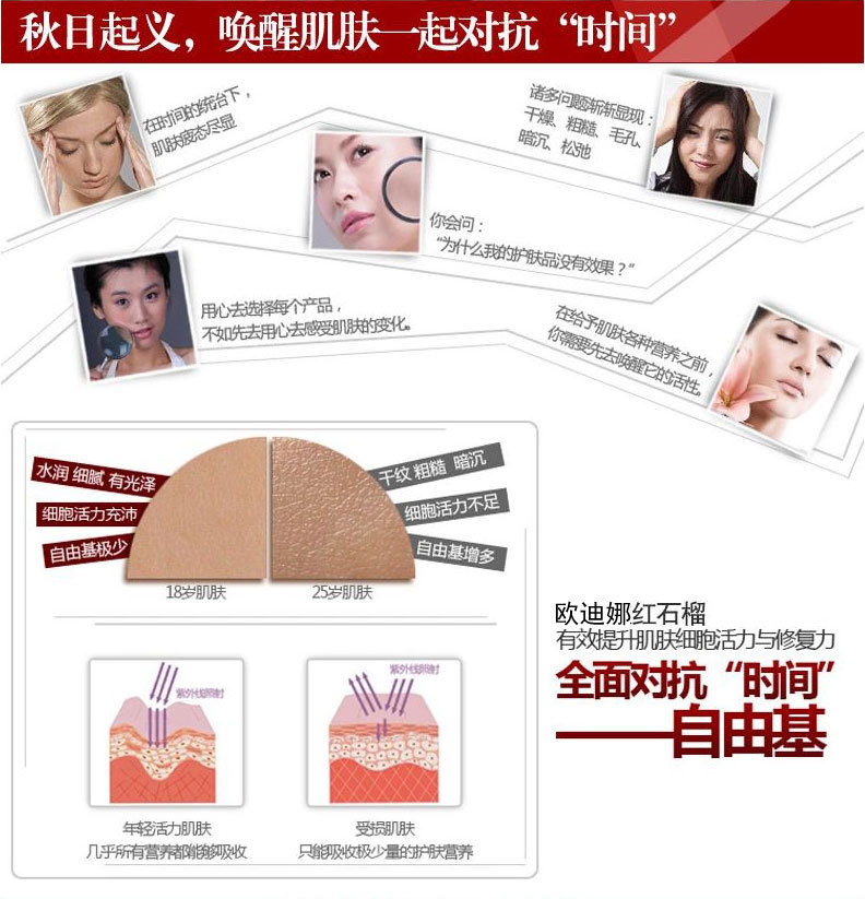 5,提高肌膚對辦公室電腦設(shè)備的抗輻射能力,趕走肌膚倦容、***及活力。含紅石榴萃取精華,為肌膚膚注入能量,令肌膚柔軟豐潤,充滿迷人活力。