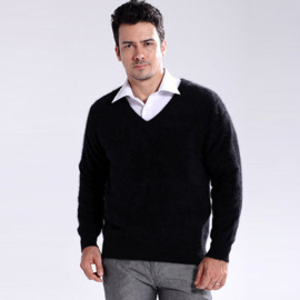 秋冬新款男士貂絨衫批發(fā) V領(lǐng)套頭純貂絨毛衣 專柜***男式打底衫
