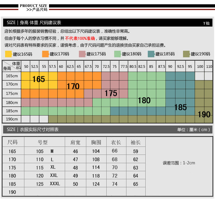 尺碼選擇:零售顧客購買,請盡量告知客服: 身高 體重 胸圍 腰圍尺寸,以免因為尺碼不合適導致退換貨。