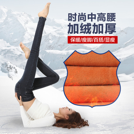 2014冬裝新款加絨水洗牛仔褲 修身彈力小腳褲女***5