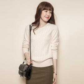 2015秋冬新款 ***修身顯瘦絞花圓領(lǐng)山羊絨毛衣加厚中長款羊絨衫