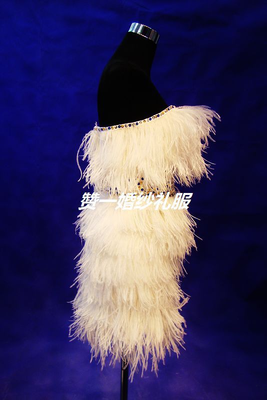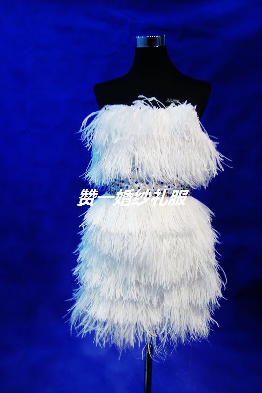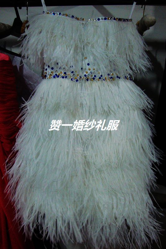 2012新銷款駝鳥毛彩色鉆珠***小禮服實拍