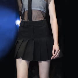 歐洲站***品牌女裝半身裙 2015秋冬新款氣質(zhì)顯瘦拼接百褶裙中裙