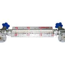 根據(jù)浮力原理和磁性耦合作用研制而成。當被測容器中的液位升降時,液位計本體管中的磁性浮子也隨之升降,浮子內的磁鋼通過磁耦合傳遞到磁翻柱指示器,驅動紅、白翻柱翻轉,當液位上升時翻柱由白色轉變?yōu)榧t色,當液位下降時翻柱由紅色轉變?yōu)榘咨甘酒鞯募t白交界處為容器內部液位的實際高度,從而實現(xiàn)液位清晰的指示。