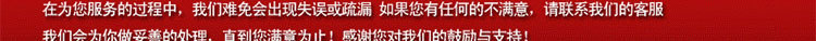 如果您對(duì)我們的服務(wù)和商品滿(mǎn)意,請(qǐng)為我們打五分,有了您的鼓勵(lì)我們會(huì)做的更好!如果有個(gè)別買(mǎi)家收到商品有任何不滿(mǎn)意,可以與客服聯(lián)系,經(jīng)核實(shí)會(huì)給您滿(mǎn)意的答復(fù).