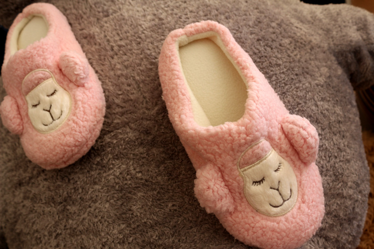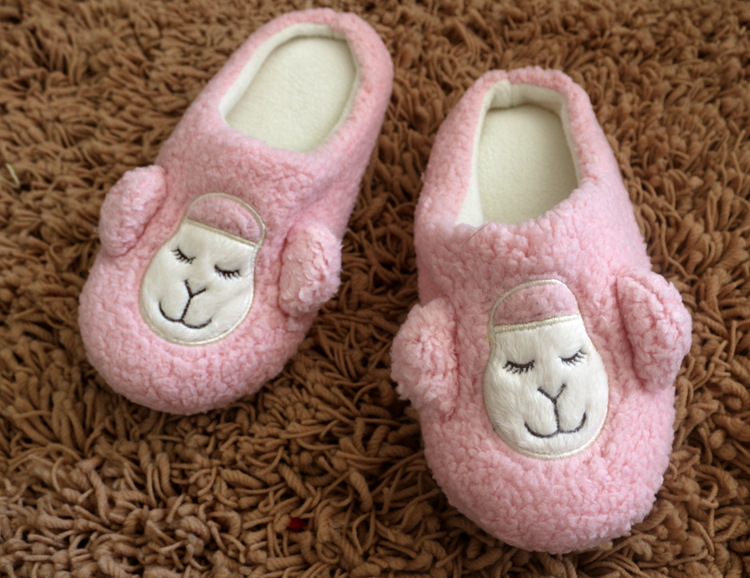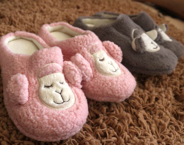 冬季粉羊駝***拖鞋半包跟男女情侶棉拖鞋居家鞋棉鞋地板鞋棉拖